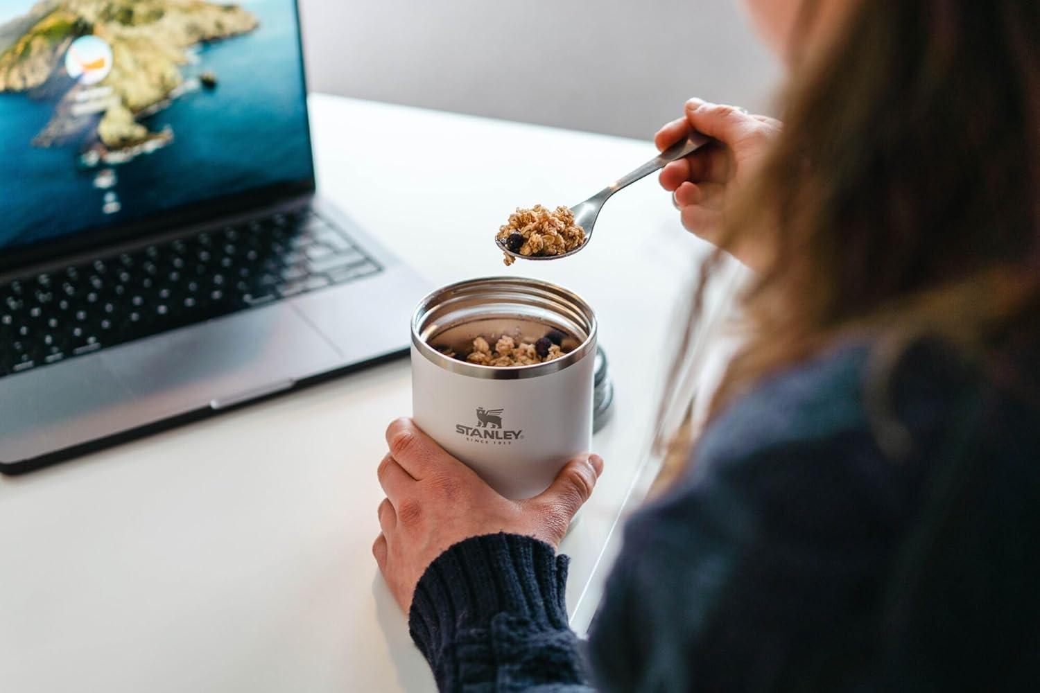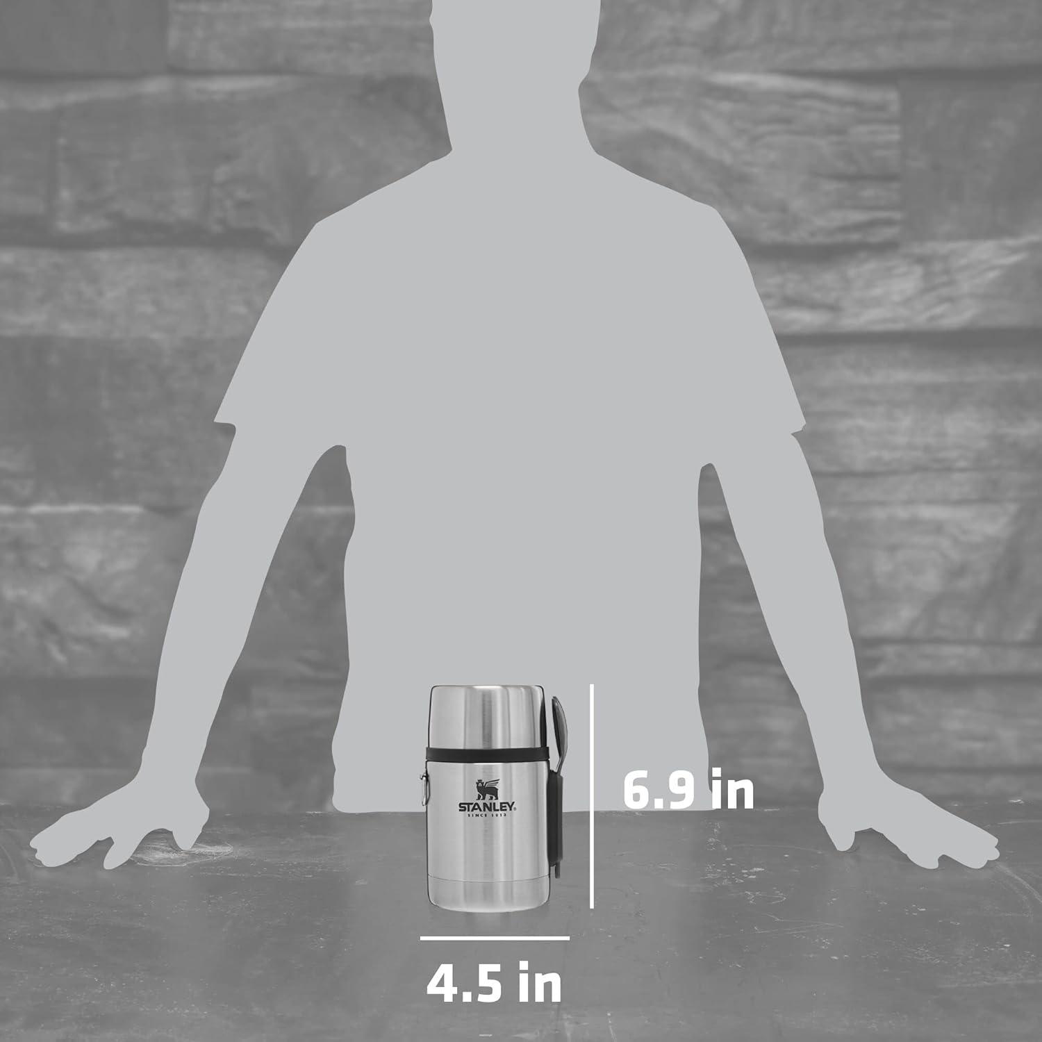STANLEY Classic Food Jar and Spork 18 oz | Vacuum Insulated Food Container | Wide Mouth Screw On Lid | Packable for Travel | Stainless Steel with Leakproof Lid | BPA-Free | Stainless Steel(18 oz)