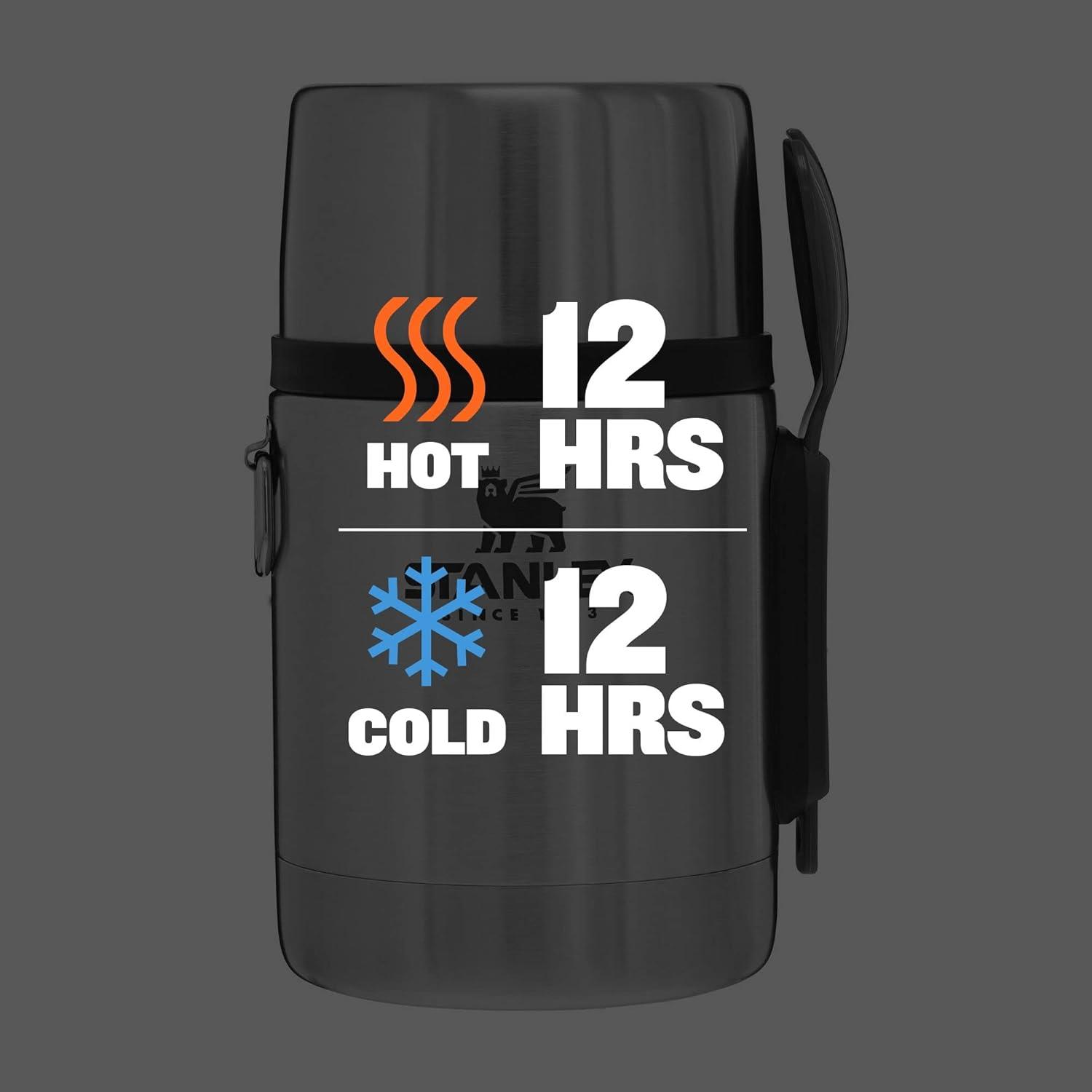 Stanley Adventure To-Go Food Jar | Vacuum Insulated Thermos Food Container | Wide Mouth Screw On Lid | Packable for Travel | Stainless Steel with Leakproof Lid | BPA-Free(Black Glow)