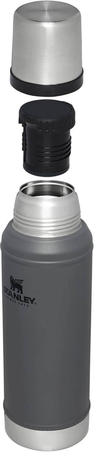 Stanley Classic Legendary Vacuum Bottle 20 oz | Wide Mouth with Leakproof Cup Lid | Keep Drinks Hot or Cold | Packable for Travel | Insulated Stainless Steel Thermos | BPA-Free | Hammertone Green(Charcoal)