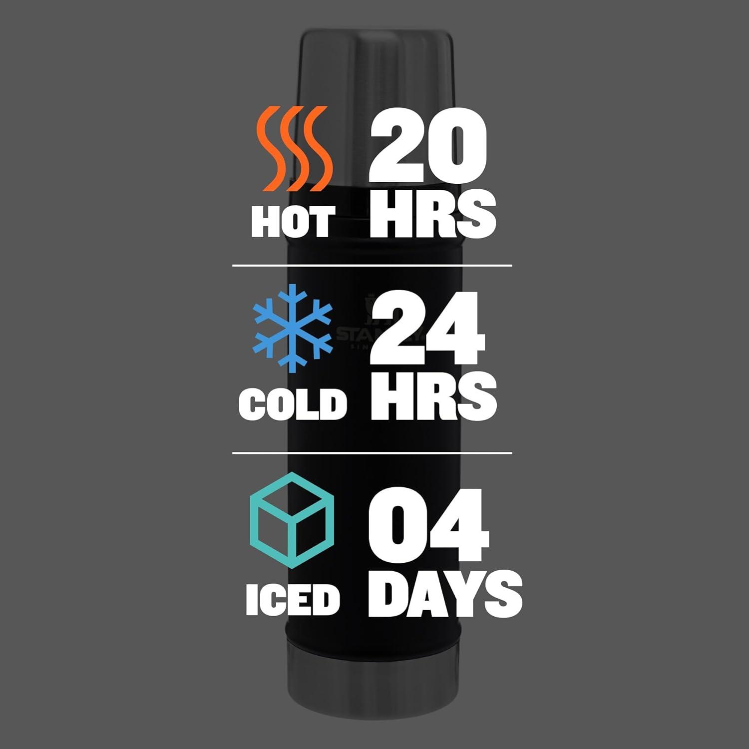 Stanley Classic Legendary Vacuum Bottle 20 oz | Wide Mouth with Leakproof Cup Lid | Keep Drinks Hot or Cold | Packable for Travel | Insulated Stainless Steel Thermos | BPA-Free | Hammertone Green(Matte Black)
