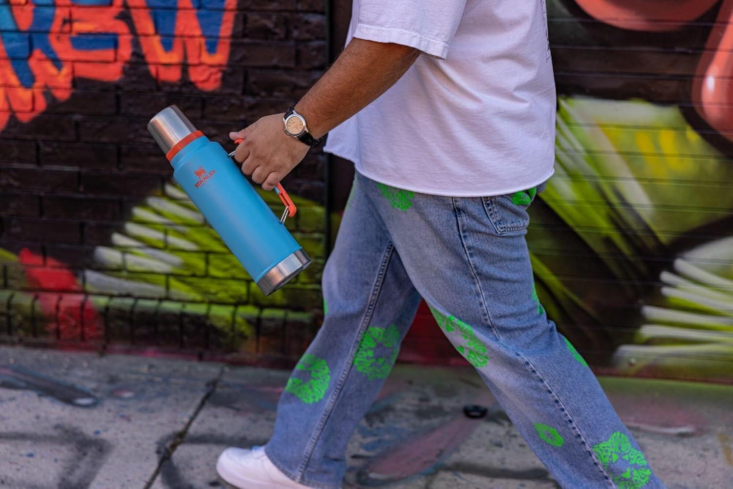 Stanley Classic Legendary Vacuum Bottle 20 oz | Wide Mouth with Leakproof Cup Lid | Keep Drinks Hot or Cold | Packable for Travel | Insulated Stainless Steel Thermos | BPA-Free | Hammertone Green(Pool Swirl)