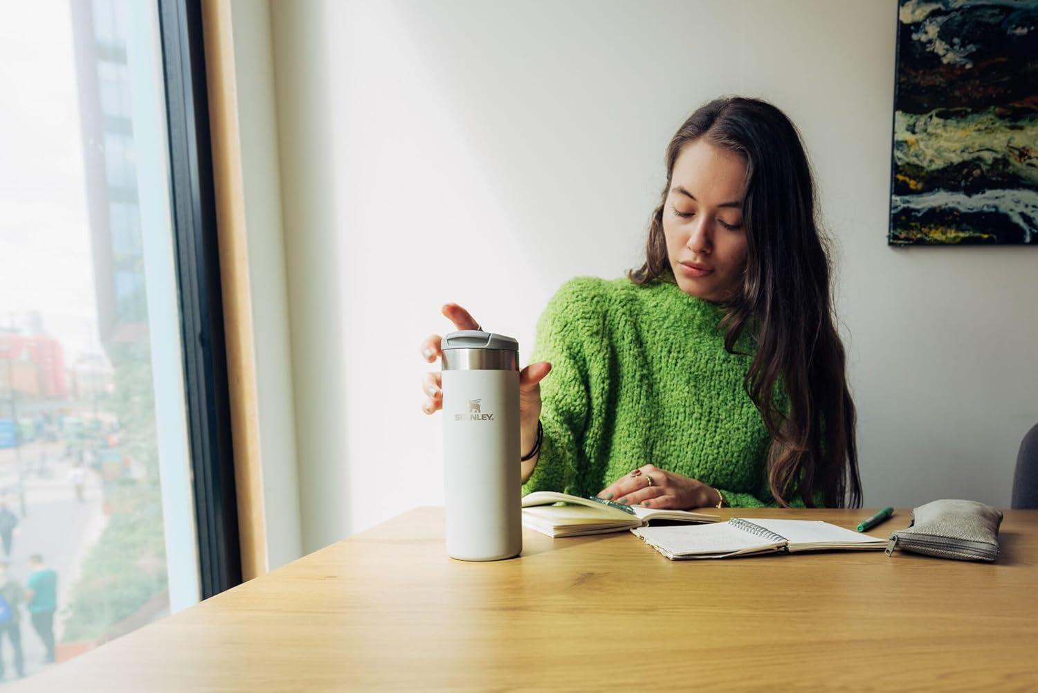 Stanley AeroLight Transit Bottle 16 oz | Locking Drink Through Lid | Leak Resistant Water Bottle or Coffee Travel Mug | Lightweight Insulated Stainless Steel | BPA-Free | Rose Quartz(Hammertone Green)
