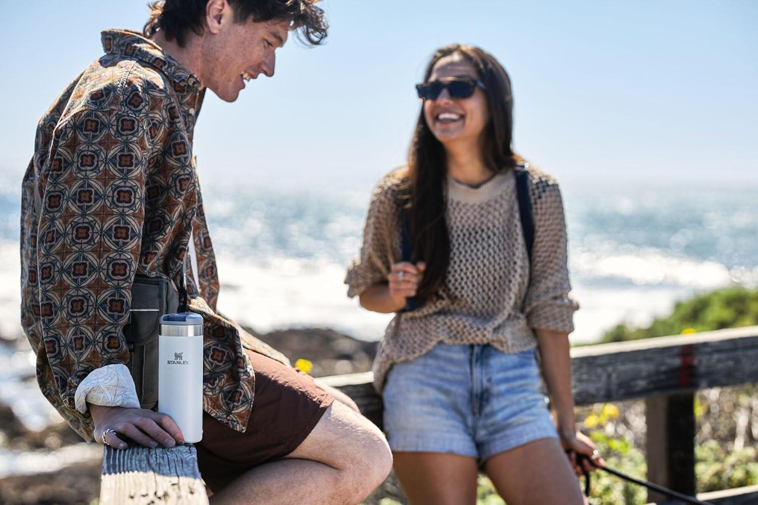 Stanley AeroLight Transit Bottle 16 oz | Locking Drink Through Lid | Leak Resistant Water Bottle or Coffee Travel Mug | Lightweight Insulated Stainless Steel | BPA-Free | Rose Quartz(Dried Pine)