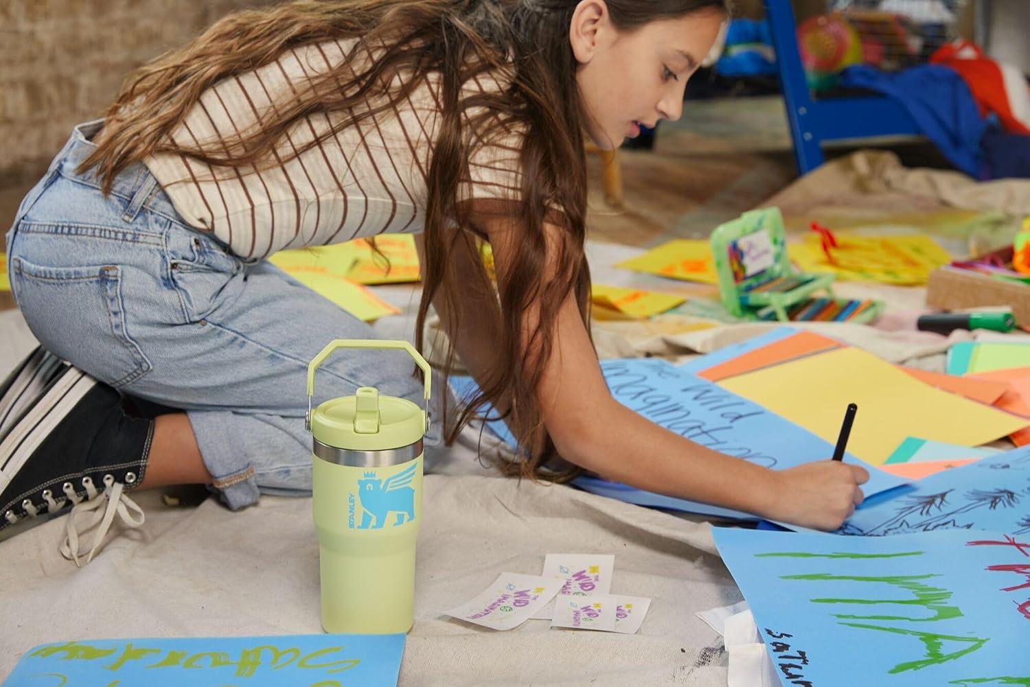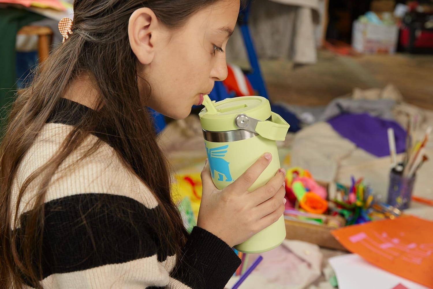 Stanley Classic IceFlow Flip Straw Tumbler for Kids (8 or Above), 20oz, Stan the Bear Stainless Steel Tumbler with Double-Wall Vacuum Insulation