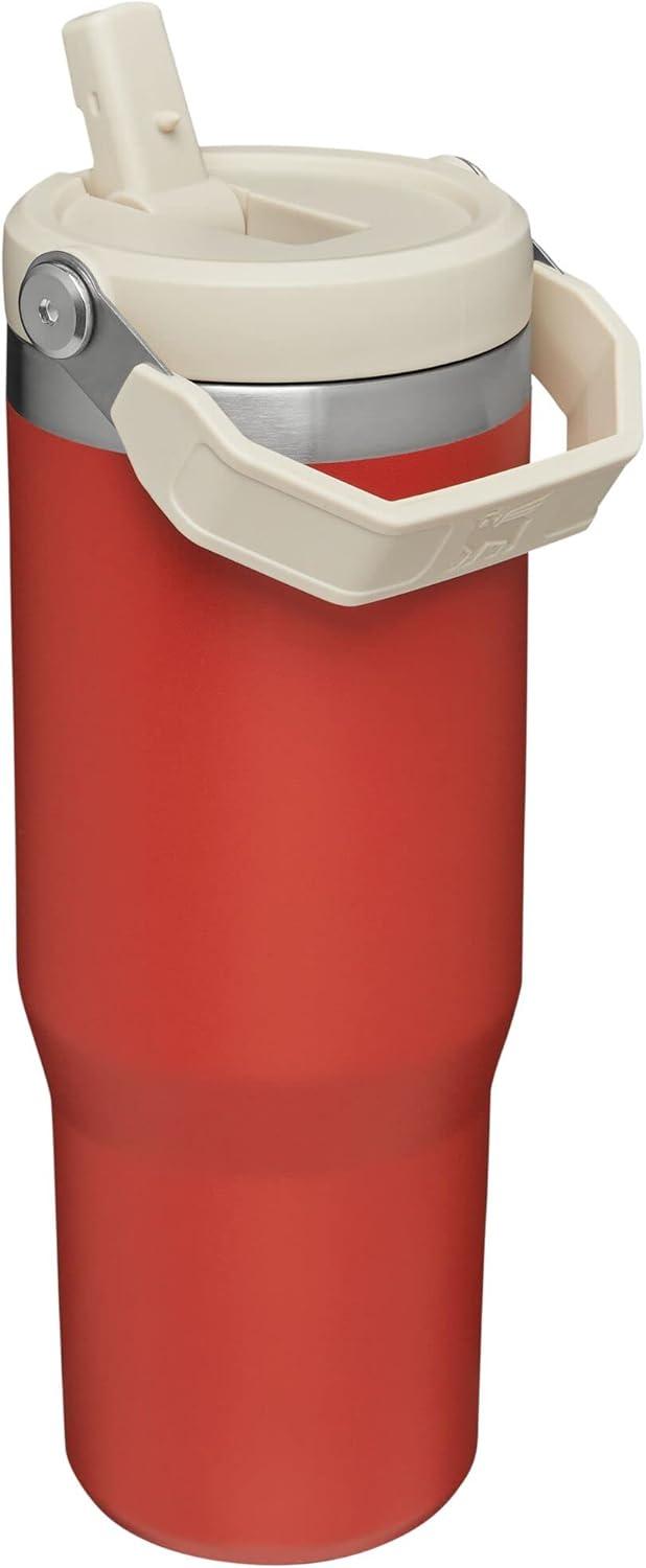 STANLEY IceFlow 2.0 Flip Straw Tumbler with Handle 30 oz | Twist On Lid and Flip Up Straw | Leak Resistant Water Bottle | Insulated Stainless Steel | BPA-Free | Exclusive Toasted Almond(Chili Red)