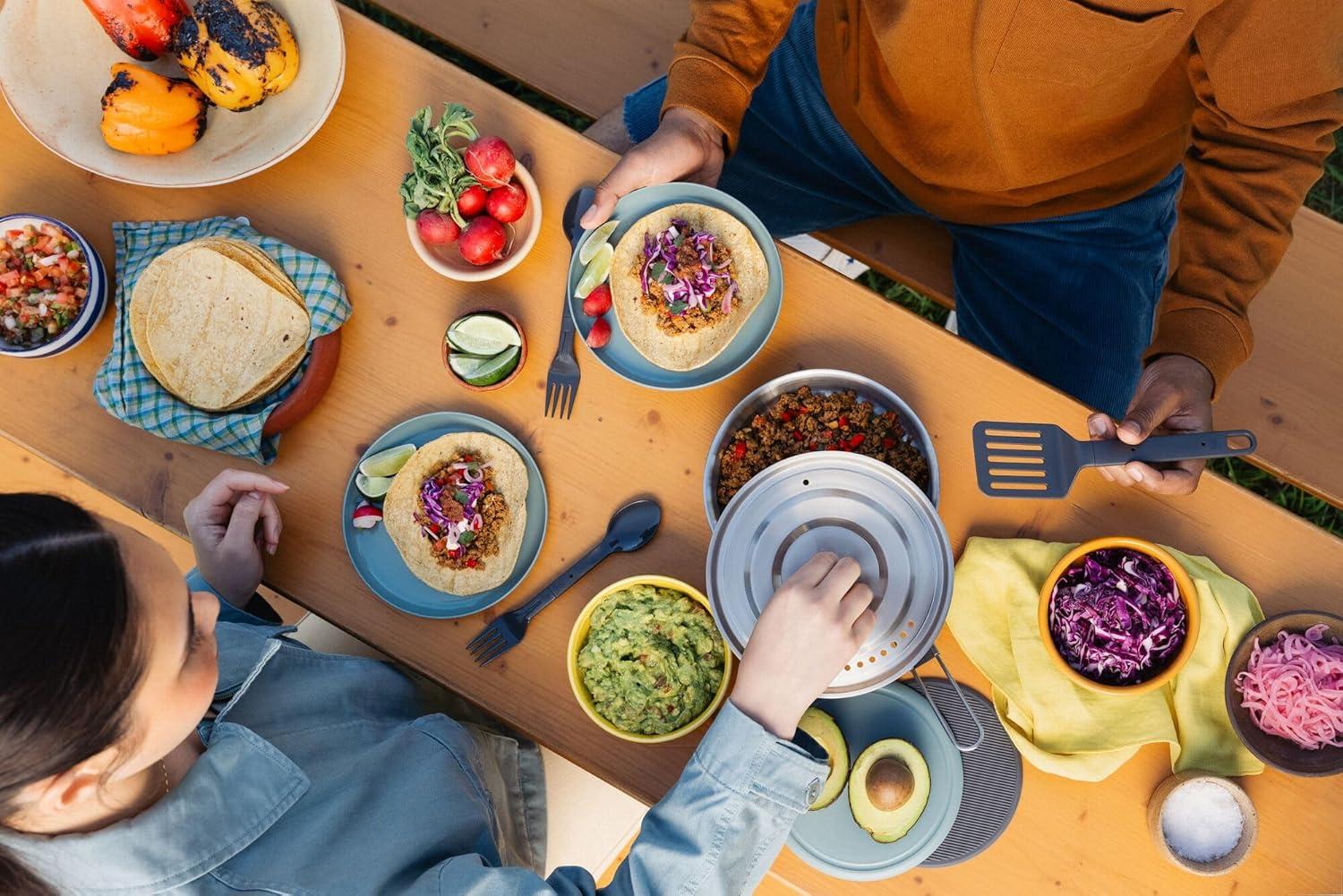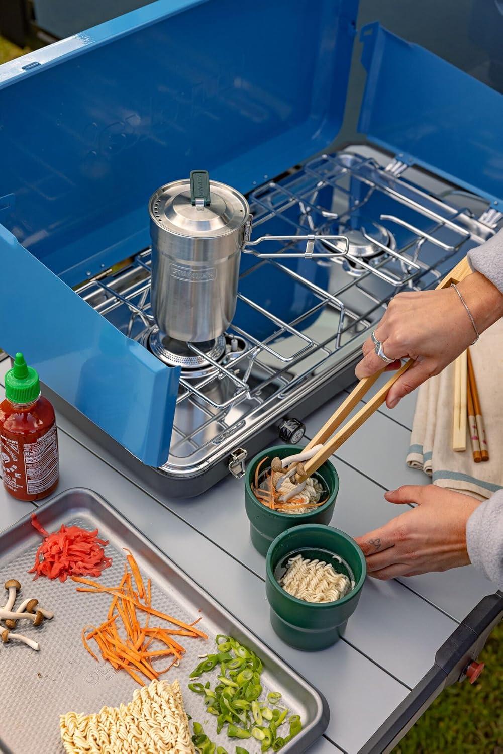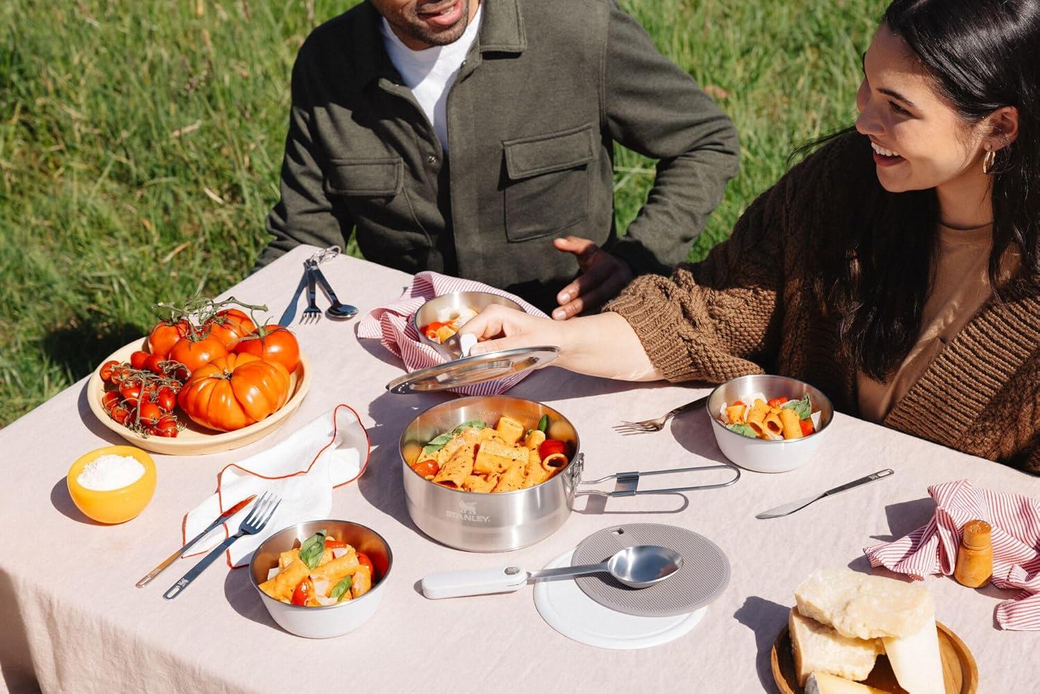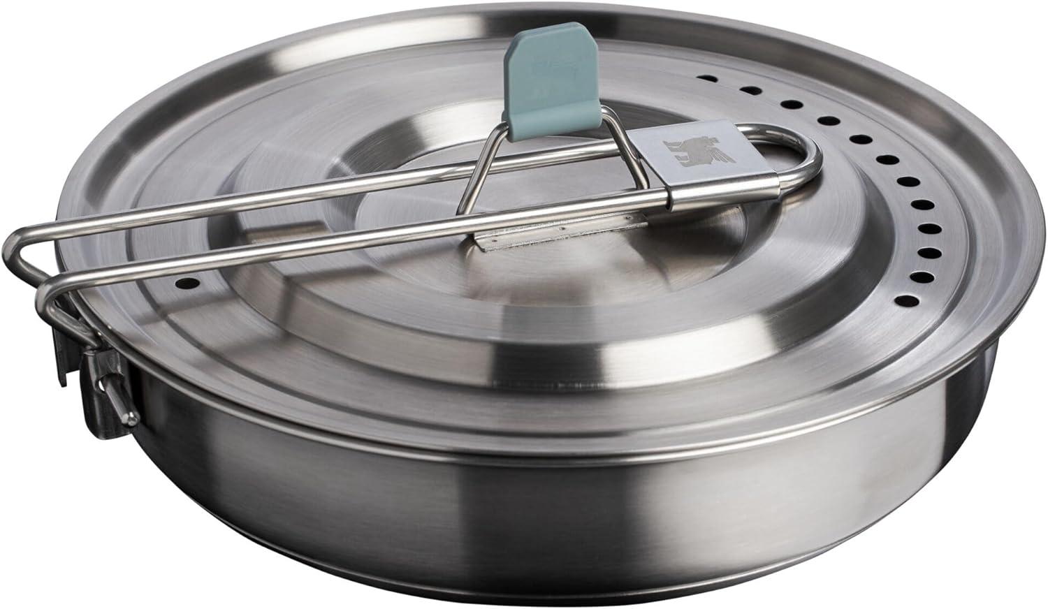 Stanley Wildfare Core 12-Piece Stainless Steel Fry Pan Cook Set | 1 qt Fry Pan with Fold & Lock Handle | Plates, Utensils, Spatula | Camping Essentials for Your Camp Kitchen | BPA-Free