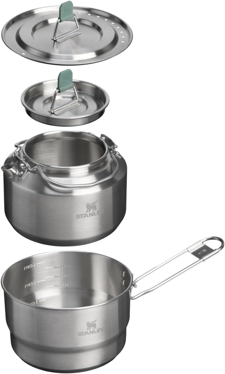 Stanley Wildfare Go 4-Piece Stainless Steel Two Cup Cook Set | 32 oz Pot and Lid with Fold & Lock Handle | 2 Stacking Cups | Camping Essentials for Your Camp Kitchen | BPA-Free | Shale + Charcoal