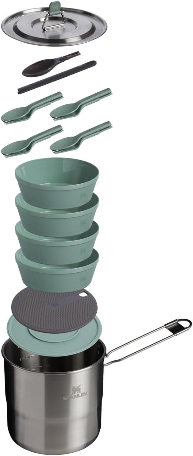 Stanley Wildfare Go Two Bowl Mess Kit | 8pc Portable Pot & Cookware Set | 1.25qt Stainless Steel Pot w/Locking Handle, Lid, 2 Bowls & Sporks(Shale + Charcoal)