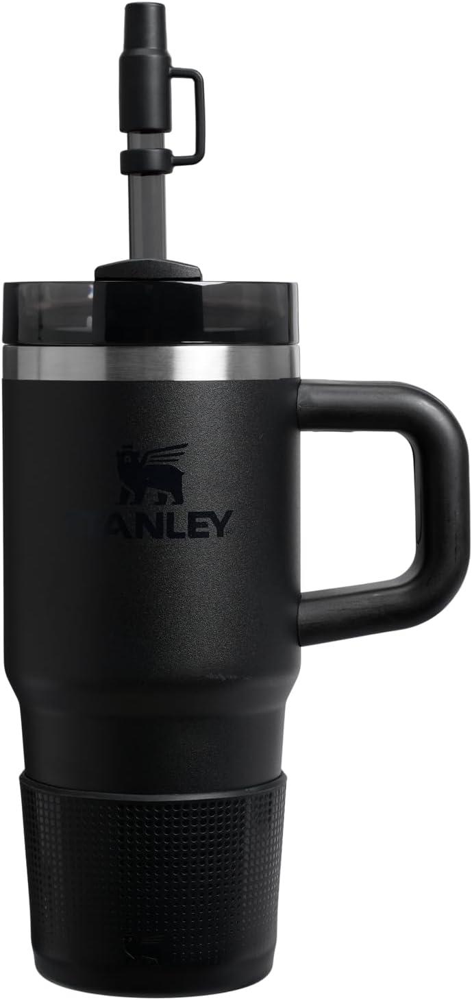 Stanley Quencher Boot and Straw Cover Cap | Anti-Slip Silicone Protector for Tumbler with Handle | Accessory Set for Stainless Steel Drinking Cup | BPA-Free(Black 2.0)
