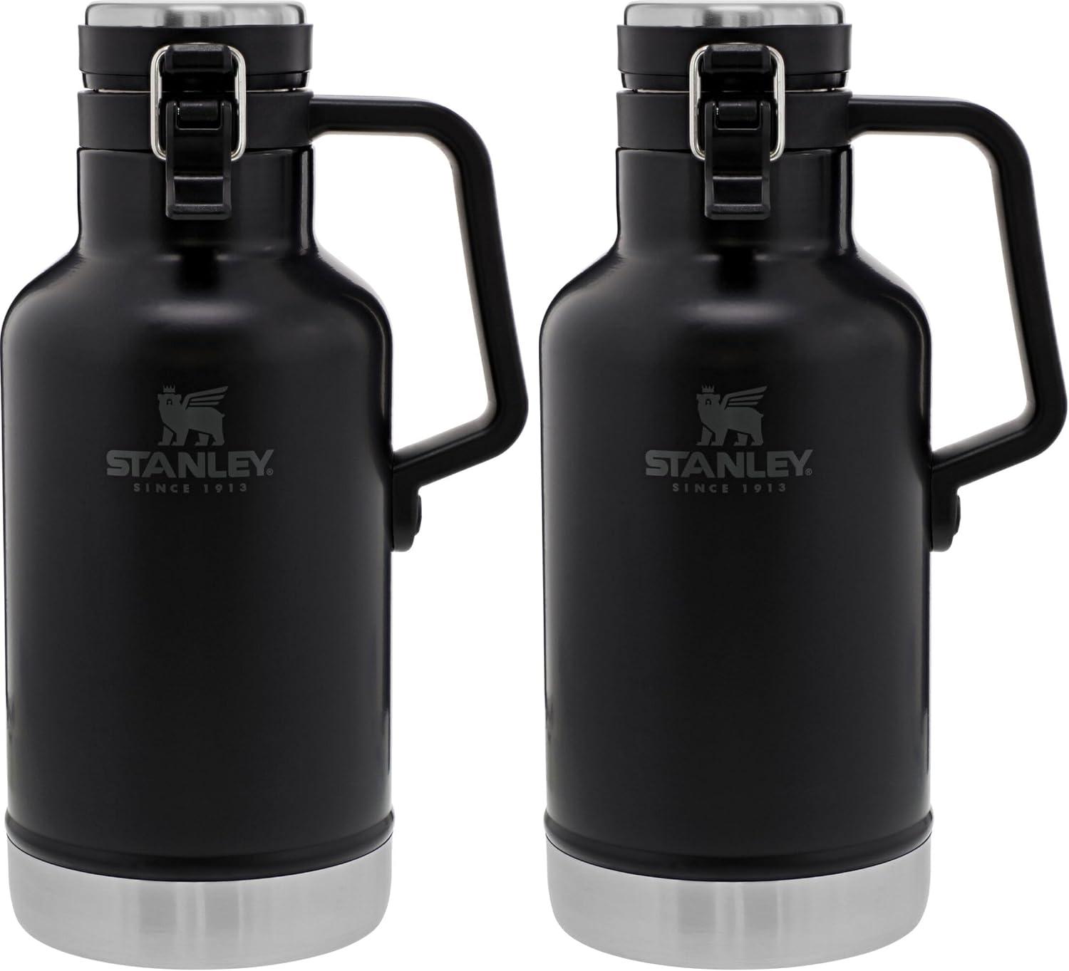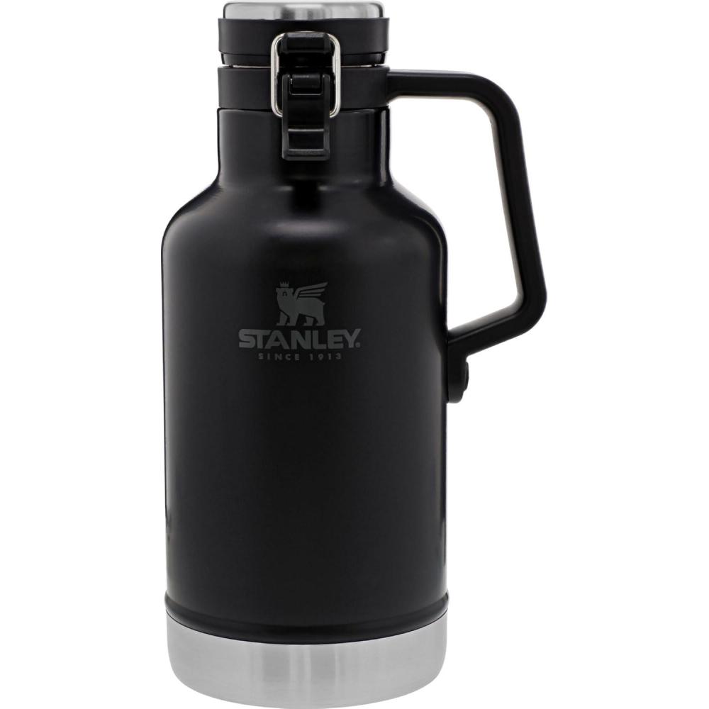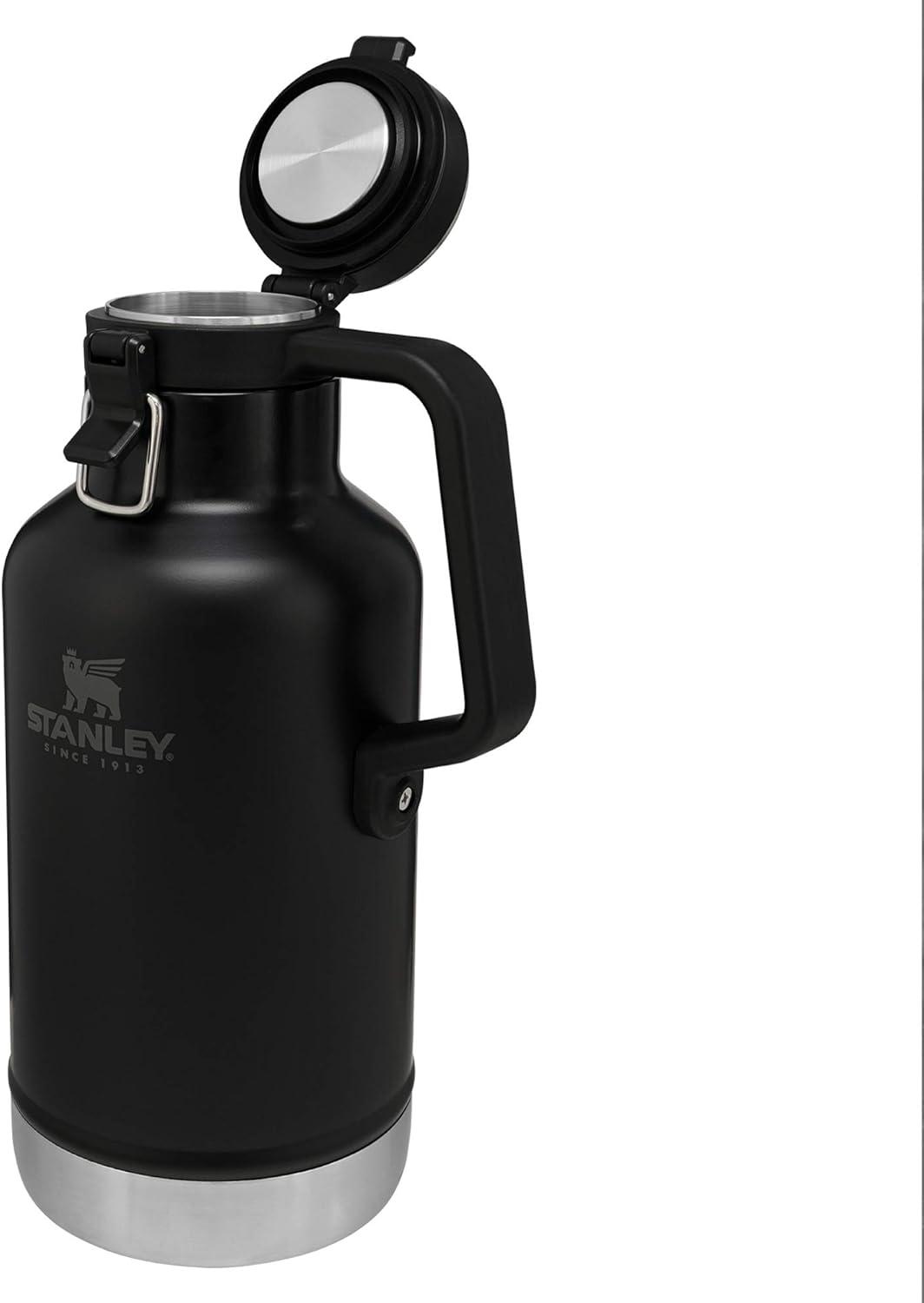 Stanley Classic Easy-Pour Growler 64 oz | Keeps Beer Cold or Coffee Hot | Leakproof Steel Lined Lid and Easy to Carry Handle | Insulated Stainless Steel | BPA-Free | Black 2.0(Matte Black)