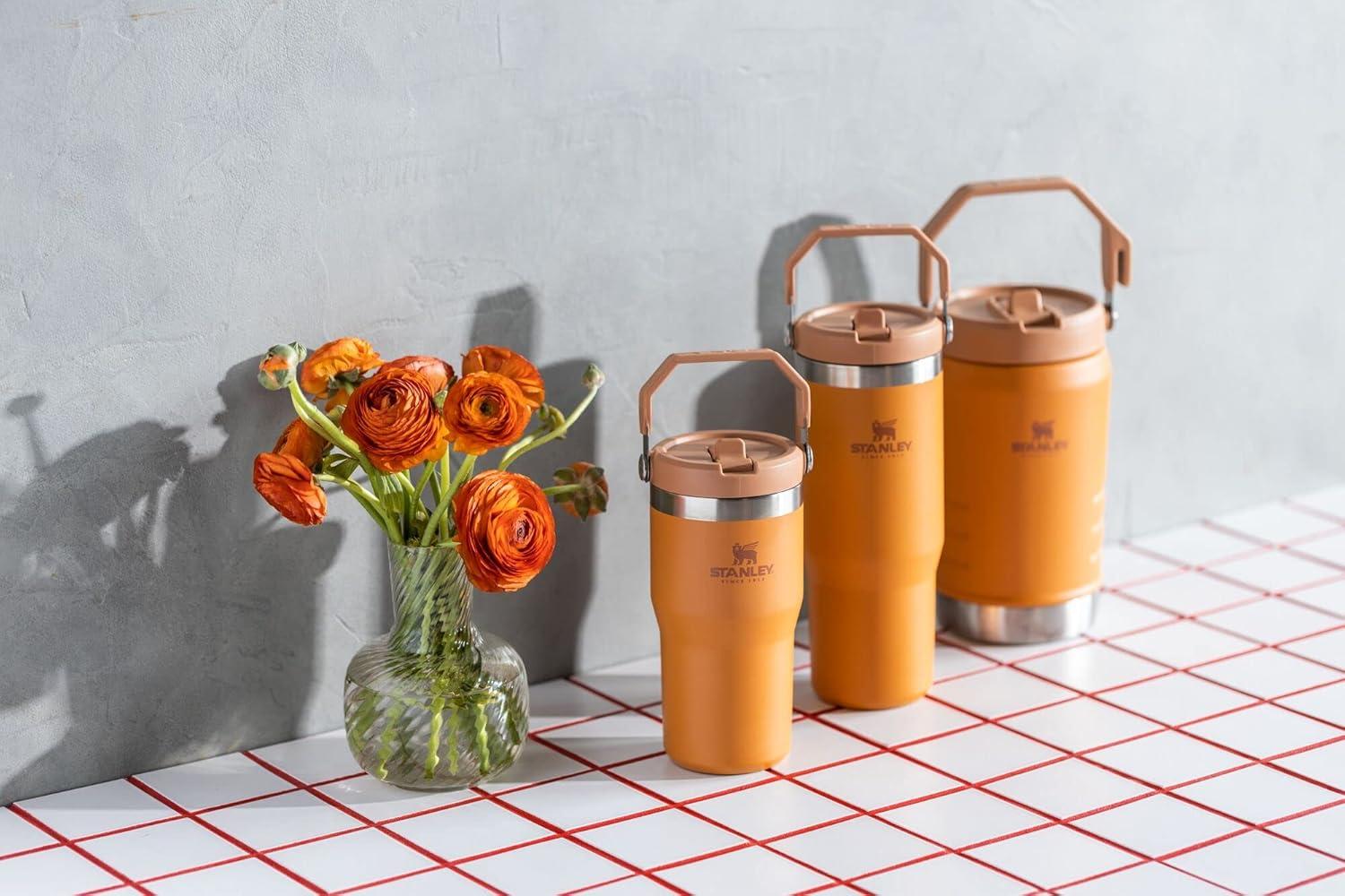 Bring calm to the chaos of the season with Toasted Almond from Stanley 1913, exclusively on Amazon. Its elegant, deep neutral browns and silver metallic accents add some grounded peace for life’s busy rhythms. The 30 oz IceFlow Flip Straw 2.0 Tumbler makes hydraton easy. Just flip up the built-in straw when you're ready to sip, then snap closed. Double-wall vacuum insulation keeps your drink ice cold for hours. Grab it by the folding handle and slip in into your car cupholder for on the go. Stays cold for 12 hours and iced for 2 days. Features: 18/8 recycled stainless steel; double wall vacuum insulation; easy-carry handle; car cupholder compatible; dishwasher safe; BPA free.