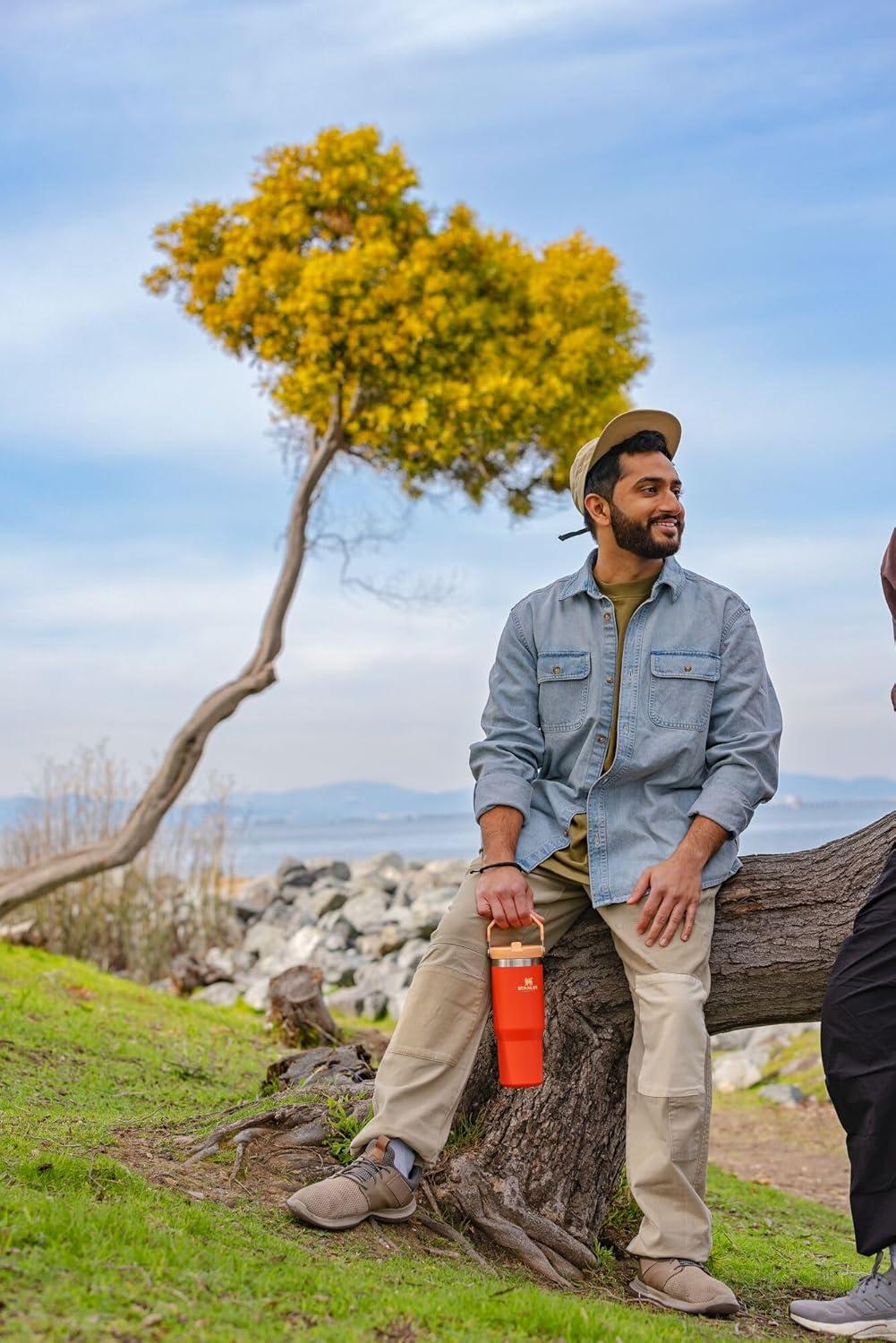 Bring calm to the chaos of the season with Toasted Almond from Stanley 1913, exclusively on Amazon. Its elegant, deep neutral browns and silver metallic accents add some grounded peace for life’s busy rhythms. The 30 oz IceFlow Flip Straw 2.0 Tumbler makes hydraton easy. Just flip up the built-in straw when you're ready to sip, then snap closed. Double-wall vacuum insulation keeps your drink ice cold for hours. Grab it by the folding handle and slip in into your car cupholder for on the go. Stays cold for 12 hours and iced for 2 days. Features: 18/8 recycled stainless steel; double wall vacuum insulation; easy-carry handle; car cupholder compatible; dishwasher safe; BPA free.