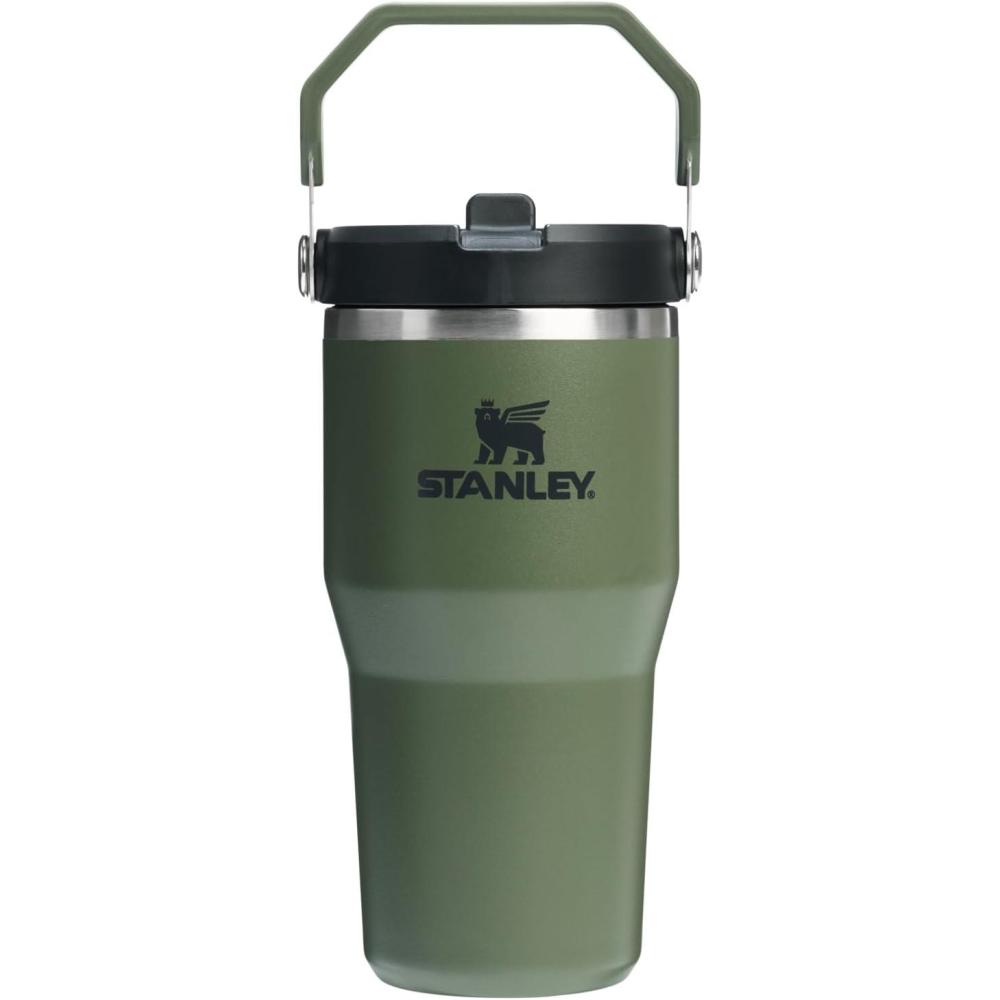 Stanley IceFlow Flip Straw Tumbler with Handle 20 oz | Twist On Lid and Flip Up Straw | Leak Resistant Water Bottle | Insulated Stainless Steel |BPA-Free | Charcoal(Dried Pine)