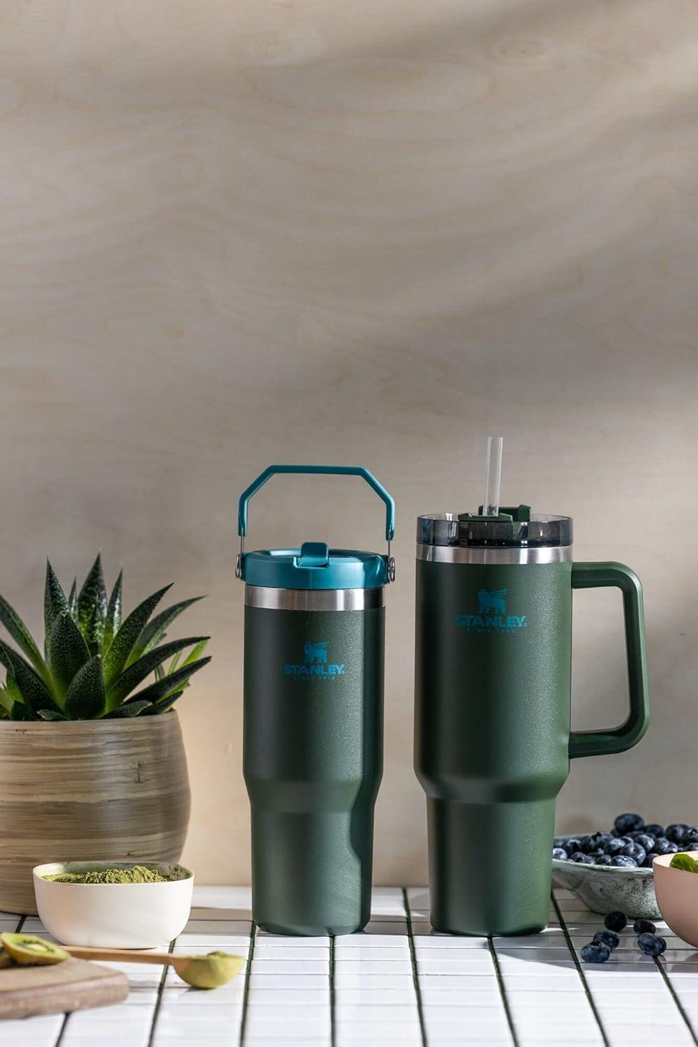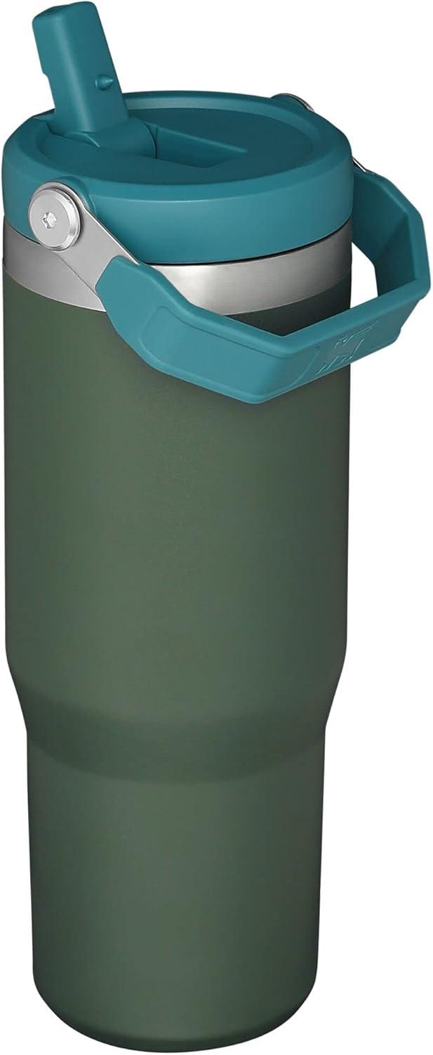 Stanley IceFlow Flip Straw Tumbler with Handle 20 oz | Twist On Lid and Flip Up Straw | Leak Resistant Water Bottle | Insulated Stainless Steel |BPA-Free | Charcoal(Spirulina)