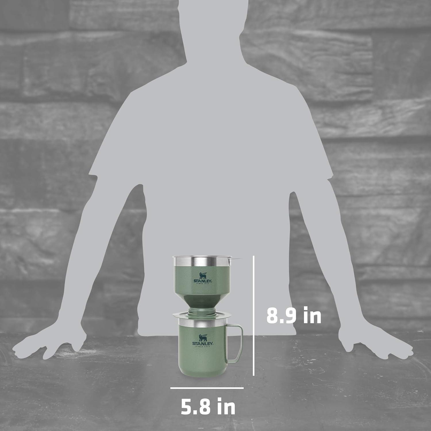 STANLEY Perfect Brew Pour Over Set | 12 oz Camp Mug with Lid Included | Drip Coffee Maker with Reusable Filter | Insulated Stainless Steel | BPA-Free | Cream Gloss(Hammertone Green)