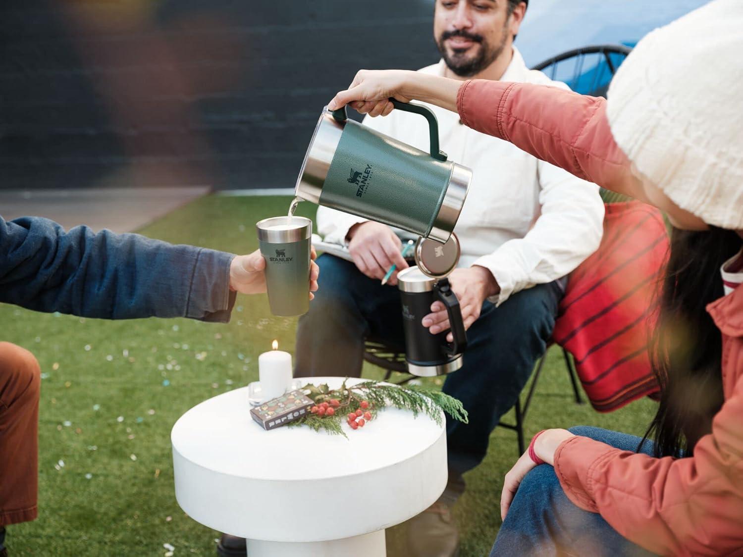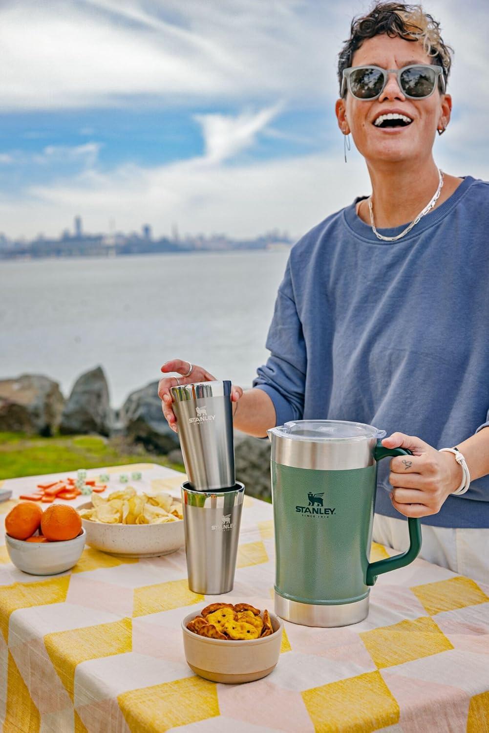 TOAST TO THE GOOD LIFE: RV adventure or backyard BBQ, camping trip or road trip, the Stanley Stay Pitcher Set punctuates it with thirst-quenching goodness. The 64oz (1.9L) stainless-steel pitcher can be used as an iced tea pitcher, lemonade pitcher, coffee pitcher, juice pitcher, large water pitcher to help you stay hydrated on all your adventures, or wine pitcher when taking your vino out into the wild