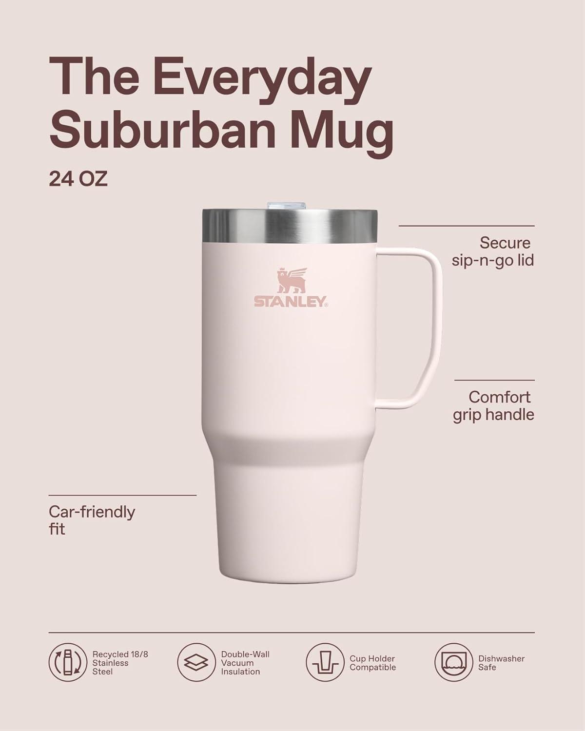 STANLEY The Everyday Suburban Mug | 16 oz | Drink Through Lid | Cup for Coffee, Tea and Drinks | Insulated Stainless Steel Coffee Mug | BPA-Free | Rose Quartz(Rose Quartz)