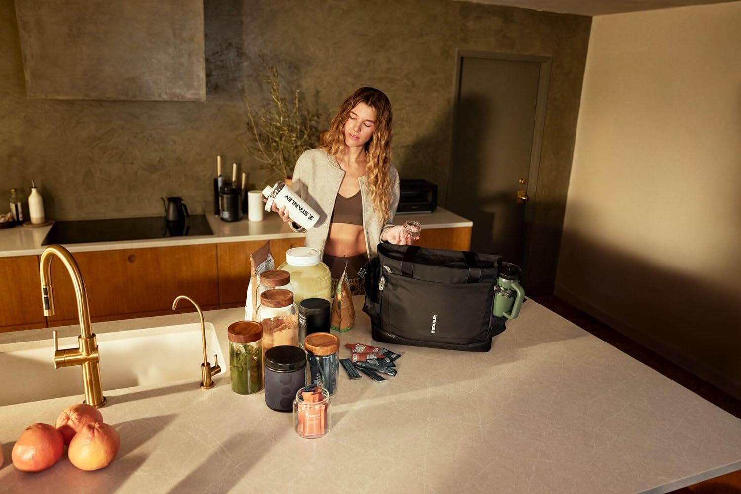 STANLEY Vitalize Shaker Bottle 20 oz | Leakproof Insulated Stainless Steel Shaker Cup | Base Storage and Twist On Fast Flow Lid | Protein Shakes and Pre Workout Powder | BPA-Free | Black(Chalk)